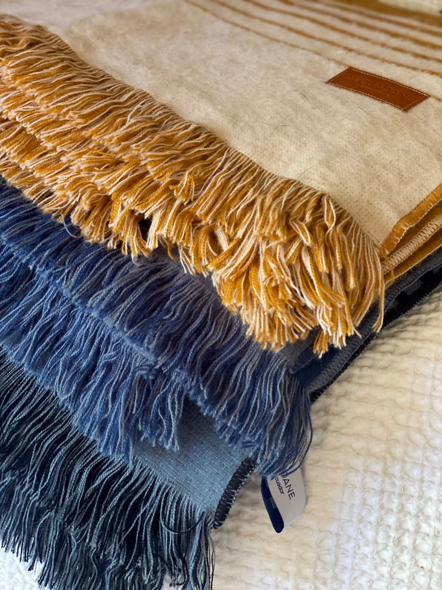 Branded Leather Tags: A highly efficient solution for large-scale conference promotional gifts, adding a premium, subtle mark to existing signature Ecuadane throws.